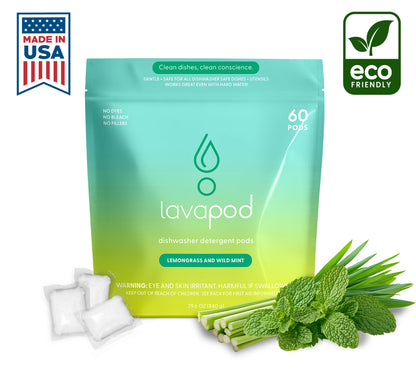 At Lavapod, we believe cleaning should be as natural as it is powerful. That’s why our dishwasher pods are crafted from Earth and plant-based active cleaning ingredients and wrapped in biodegradable PVA film, giving your dishes a spotless shine without the harsh chemicals.